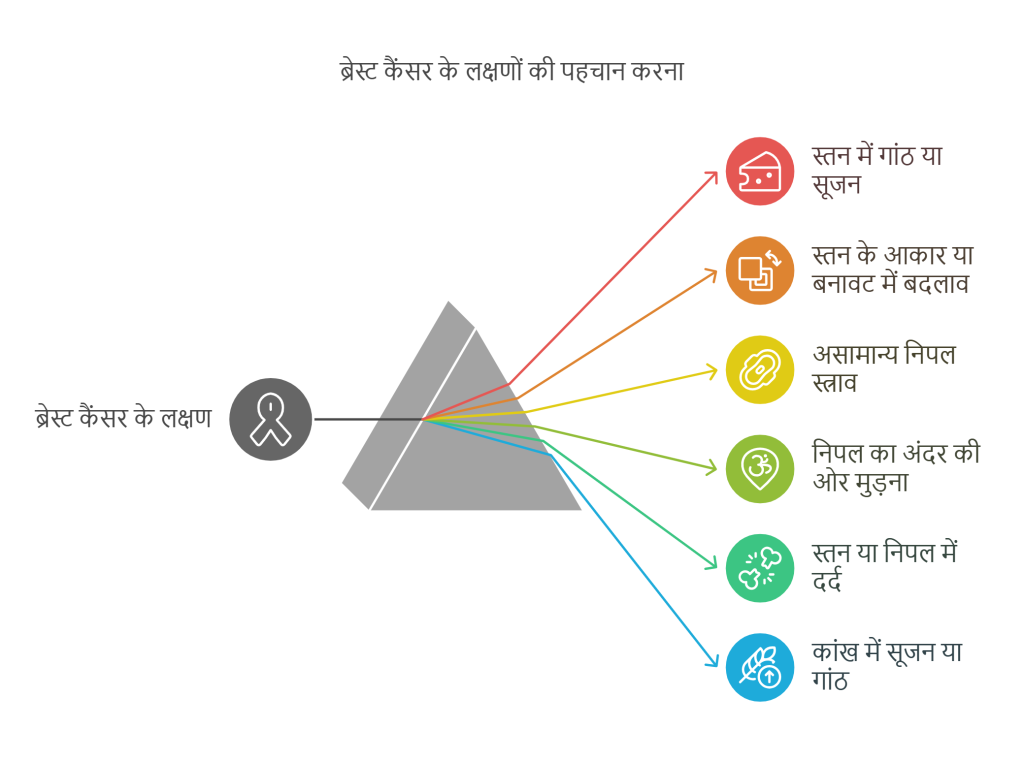 Breast Cancer Symptoms in Hindi की पहचान करना बेहद ज़रूरी है क्योंकि शुरुआती चरण में इसका इलाज आसानी से किया जा सकता है। इसलिए, महिलाओं को अपने शरीर में होने वाले किसी भी बदलाव को नज़रअंदाज नहीं करना चाहिए और नियमित रूप से ब्रेस्ट की जांच करवानी चाहिए।