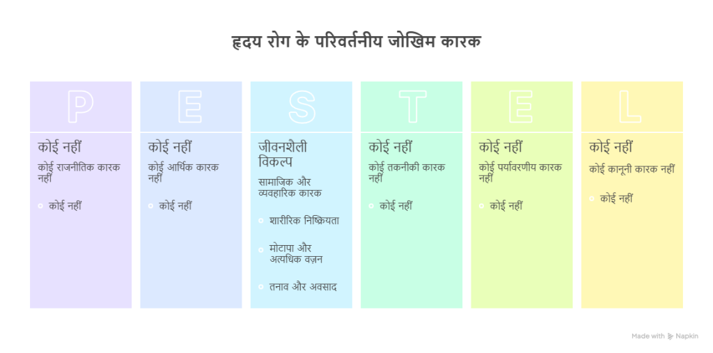 - शारीरिक निष्क्रियता: व्यायाम की कमी से मोटापा और अन्य जोखिम कारक बढ़ते हैं।