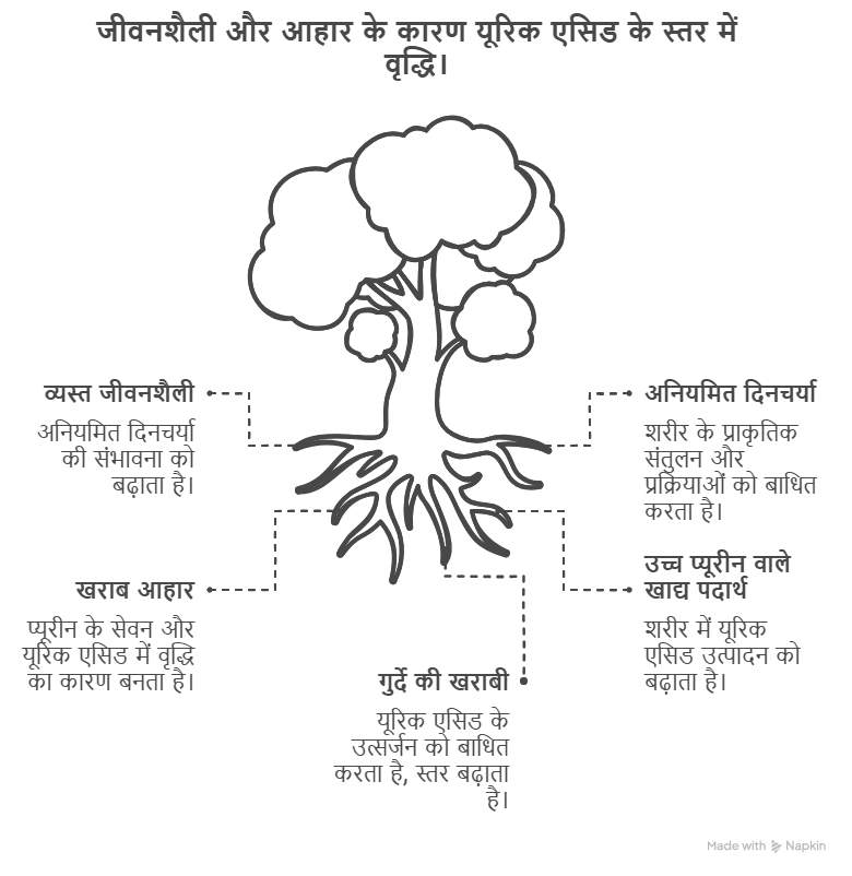 यूरिक एसिड बढ़ने के कई महत्वपूर्ण कारण हैं, जिन्हें समझना आवश्यक है: